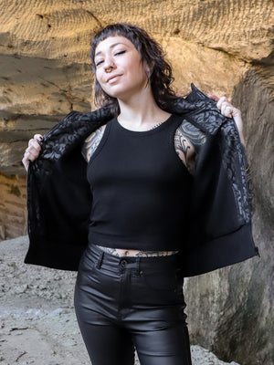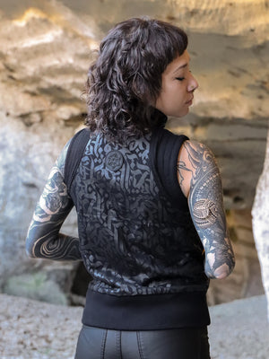 Veste zippée noire sans manches imprimé animal - BlackBohemWear