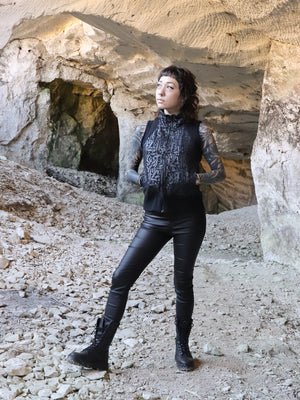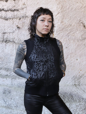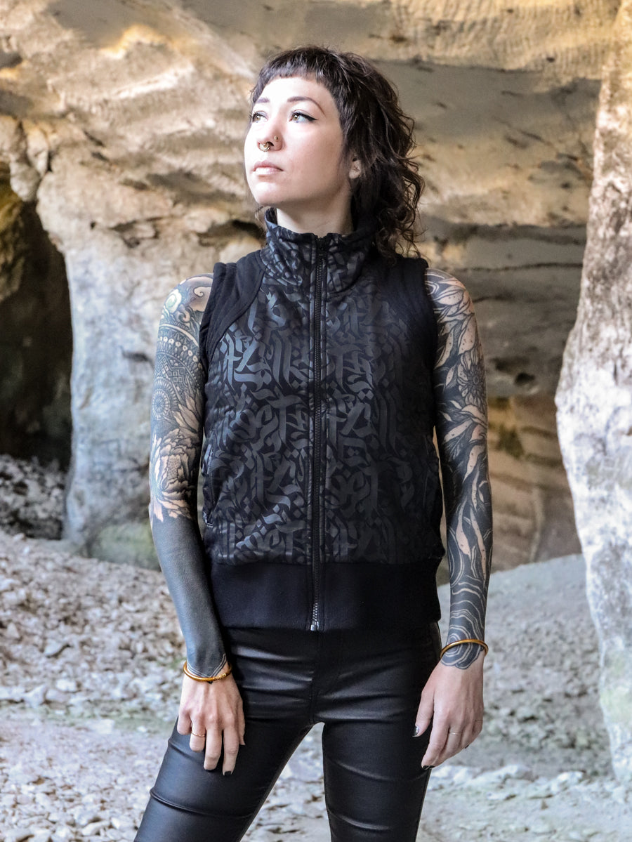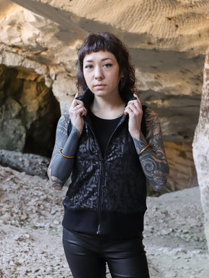 Veste zippée noire sans manches imprimé animal - BlackBohemWear