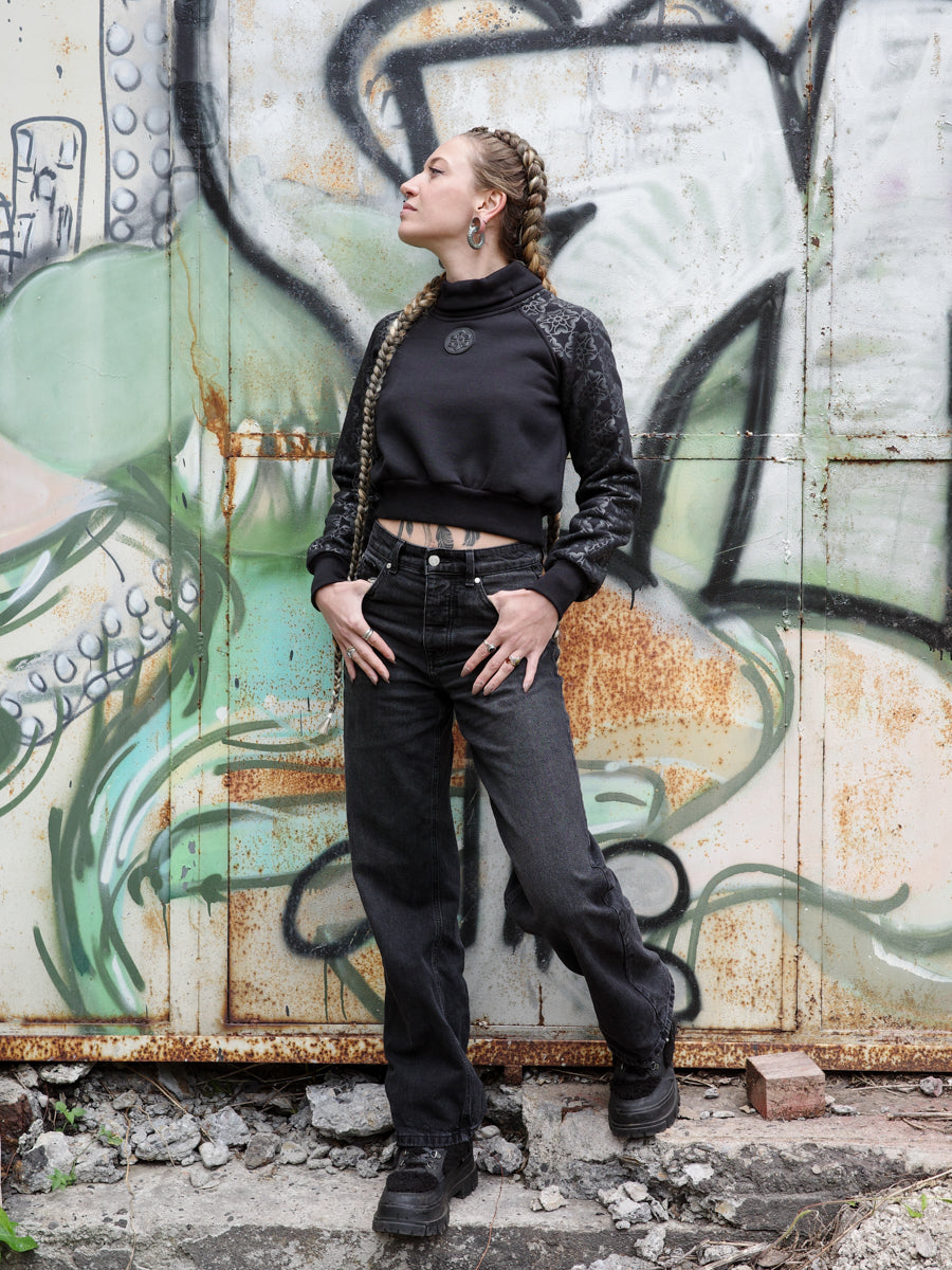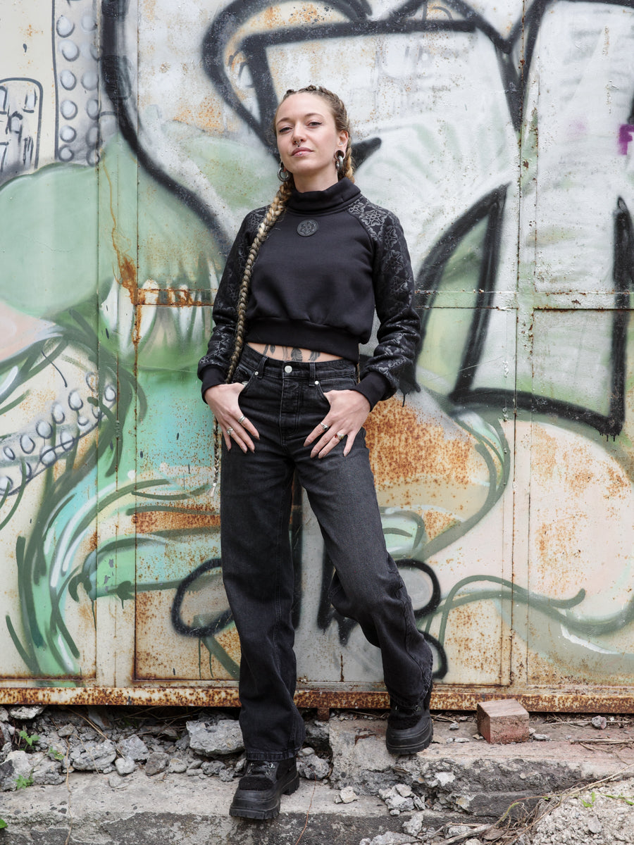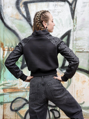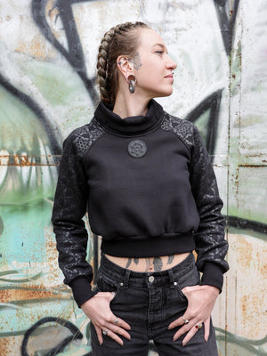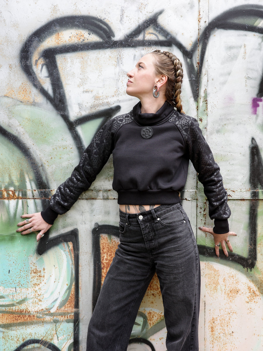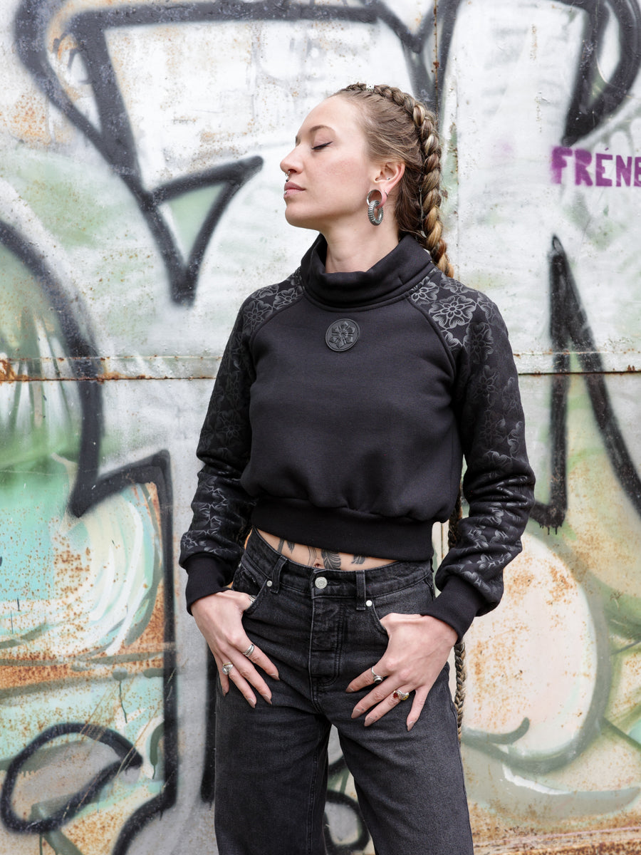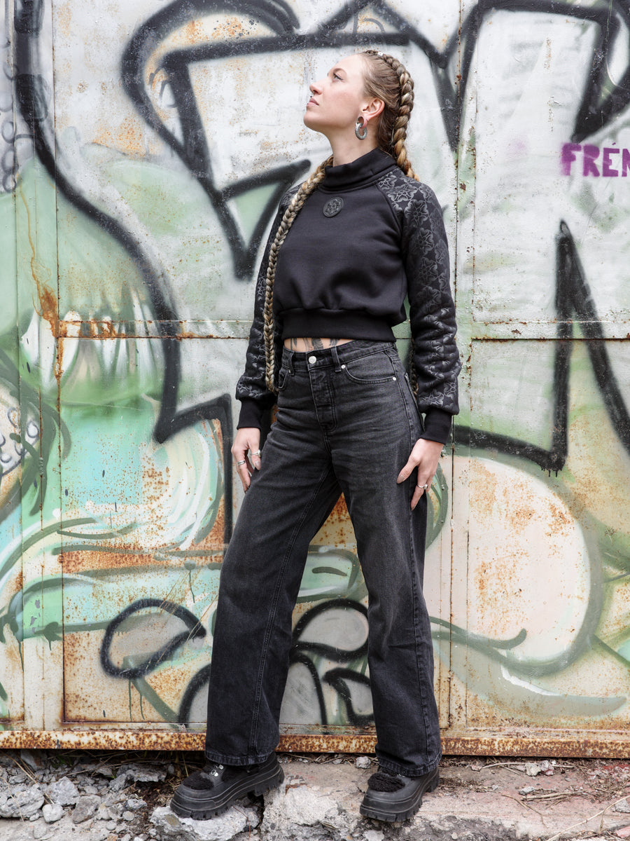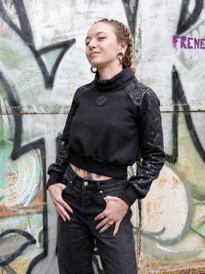 Petit pull court en molleton noir 80 % coton 20 % polyester